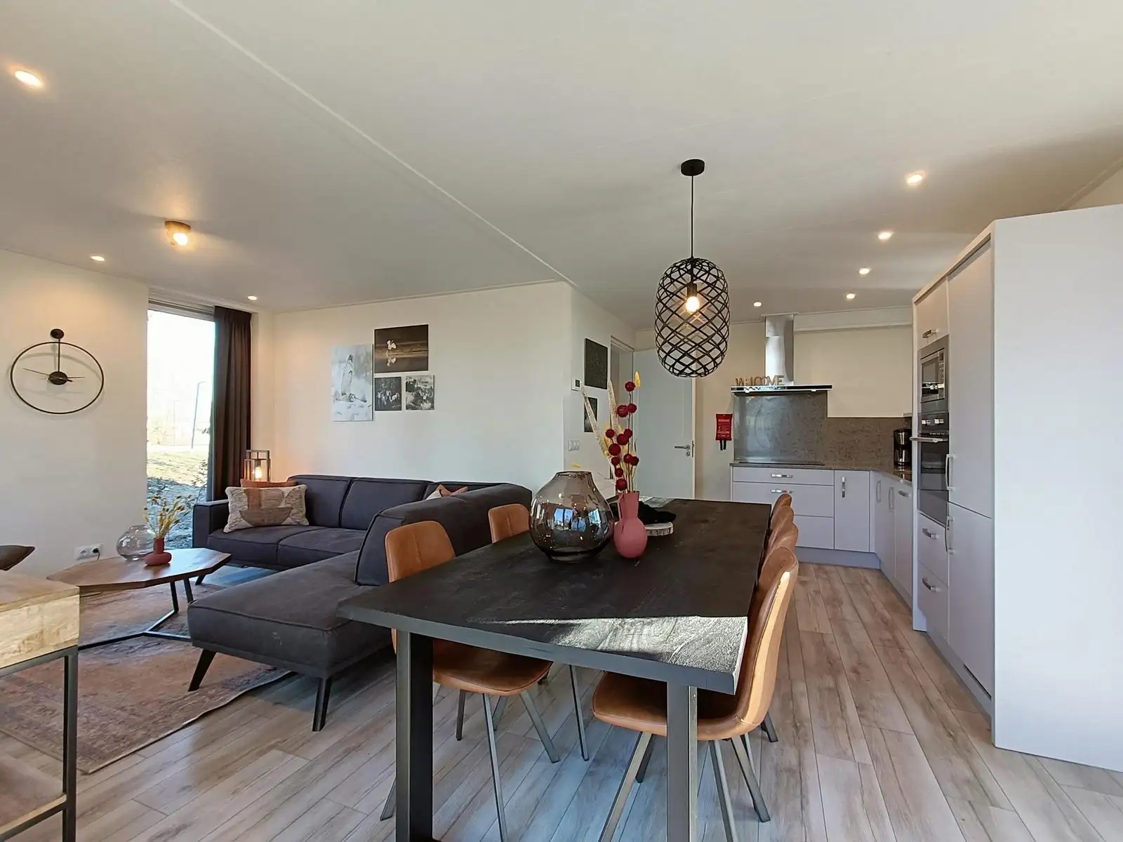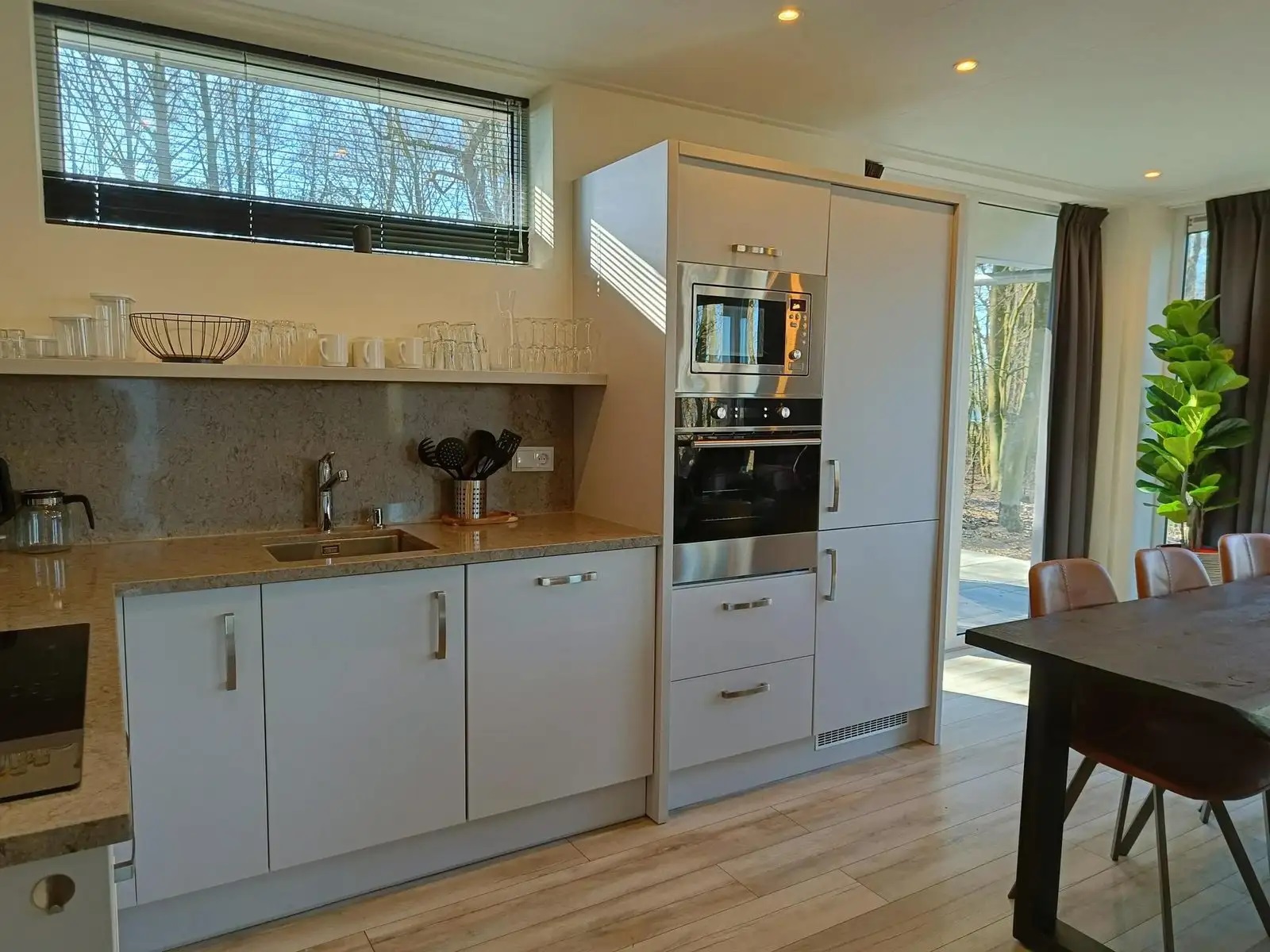 - Keuken & eethoek: Moderne keuken met alle benodigdheden, inclusief vaatwasser, oven, en filter koffiezetapparaat.
